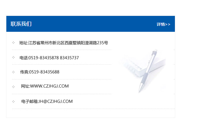 傳真:0519-83435688    郵編:213135    網(wǎng)址:WWW.czjhgj_com.ycfczy.com    電子郵箱:JH@czjhgj_com.ycfczy.com